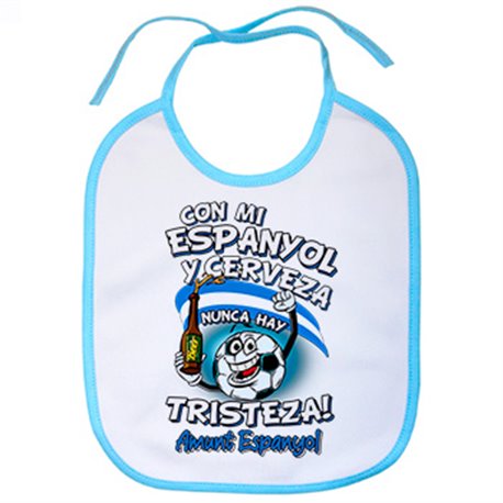 Babero frase con mi Espanyol y cerveza nunca hay tristeza para aficionado al fútbol
