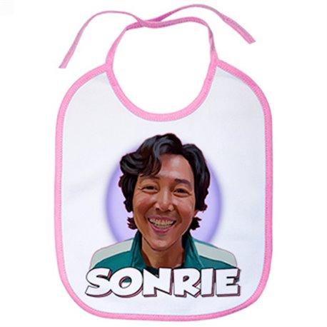 Babero ilustración caricatura de jugador del calamar sonriendo