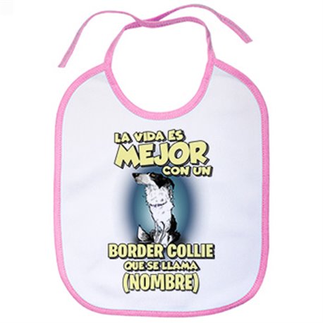 Babero la vida es mejor con un perro raza Border Collie que se llama personalizable con nombre