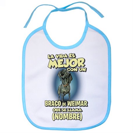 Babero la vida es mejor con un perro raza Braco de Weimar que se llama personalizable con nombre