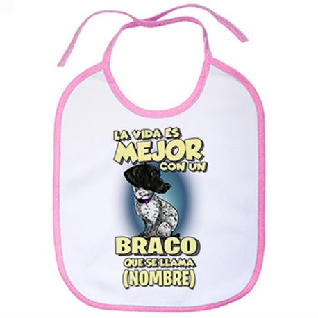 Babero la vida es mejor con un perro raza Braco que se llama personalizable con nombre