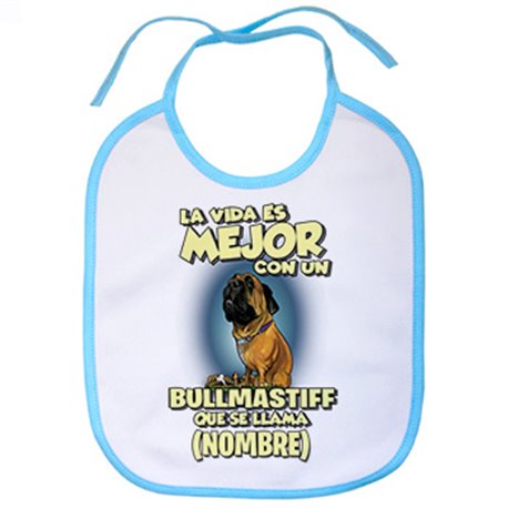 Babero la vida es mejor con un perro raza Bullmastiff que se llama personalizable con nombre
