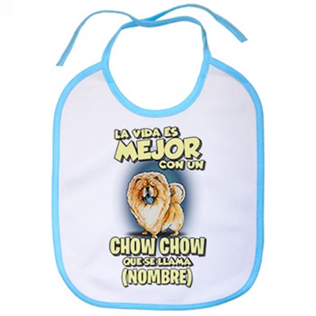 Babero la vida es mejor con un perro raza Chow Show que se llama personalizable con nombre