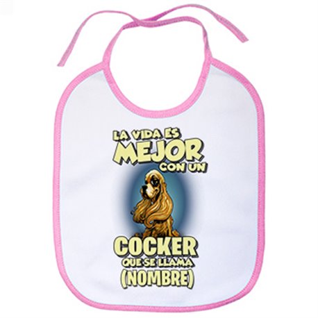 Babero la vida es mejor con un perro raza Cocker que se llama personalizable con nombre