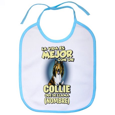 Babero la vida es mejor con un perro raza Collie que se llama personalizable con nombre