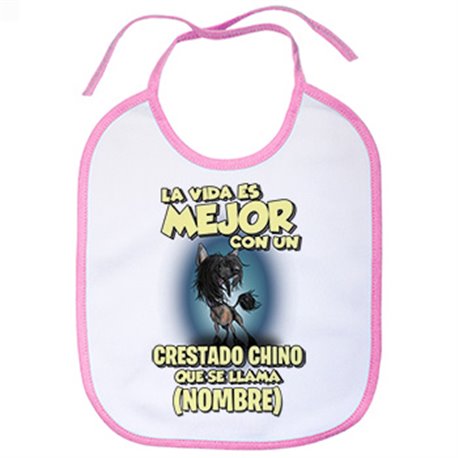 Babero la vida es mejor con un perro raza Crestado Chino que se llama personalizable con nombre