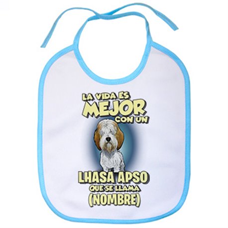Babero la vida es mejor con un perro raza Lhasa Apso que se llama personalizable con nombre