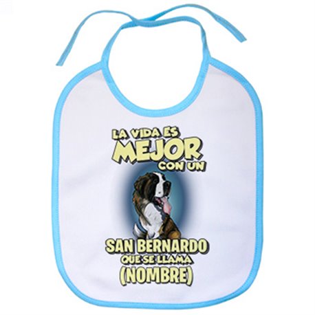 Babero la vida es mejor con un perro raza San Bernardo que se llama personalizable con nombre