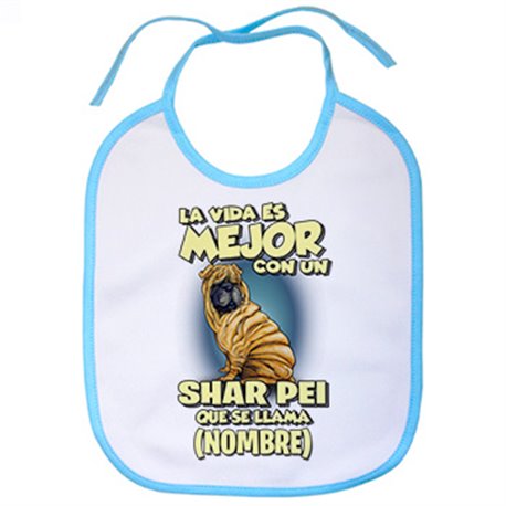 Babero la vida es mejor con un perro raza Shar Pei que se llama personalizable con nombre