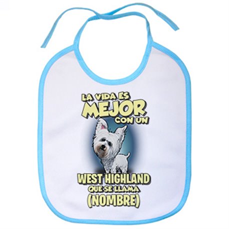 Babero la vida es mejor con un perro raza West Highland que se llama personalizable con nombre