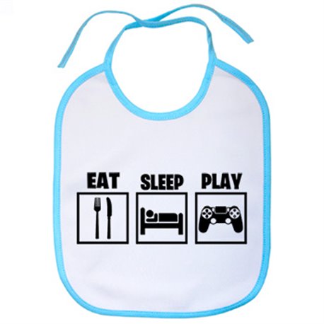 Babero para gamers viciados de los videojuegos con frase Eat Sleep Play