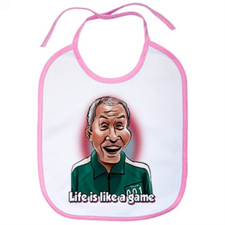 Babero parodia del calamar caricatura del viejo jugador 001 con frase gganbu