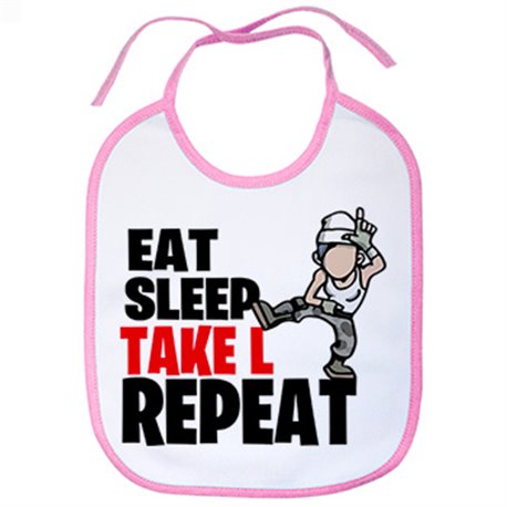Babero parodia pose baile gamer frase eat sleep Take L repeat