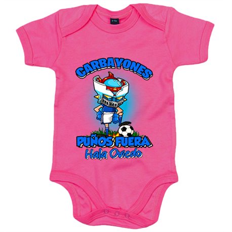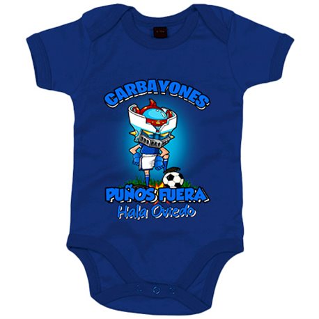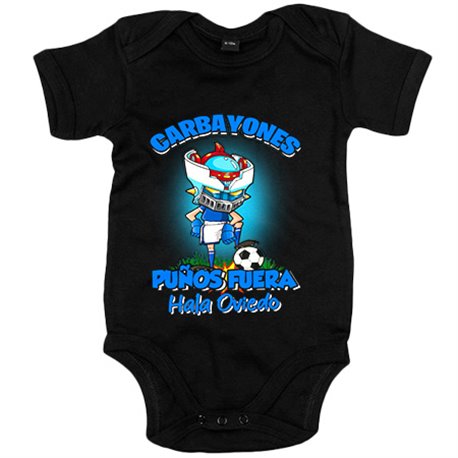 Body bebé frase carbayones puños fuera parodia robot de los 80 para nostálgicos futboleros de Oviedo