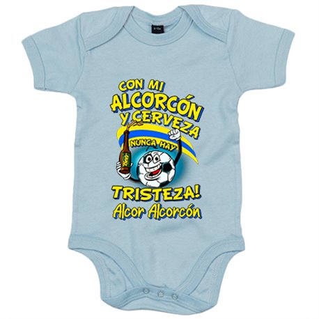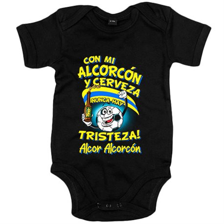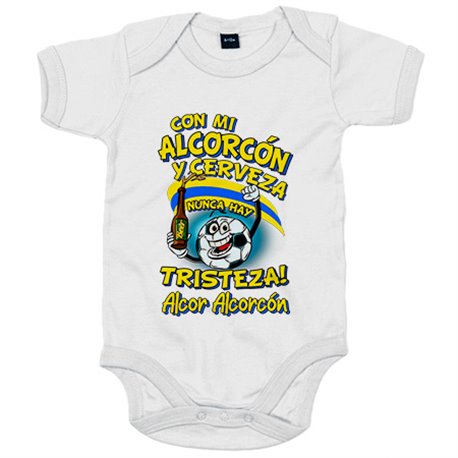 Body bebé frase con mi Alcorcón y cerveza nunca hay tristeza para aficionado al fútbol