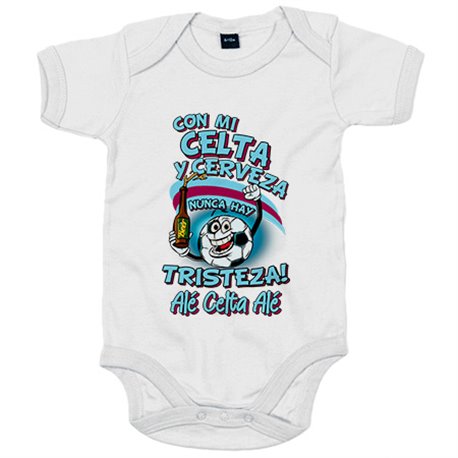 Body bebé frase con mi Celta y cerveza nunca hay tristeza para aficionado al fútbol