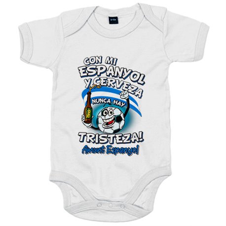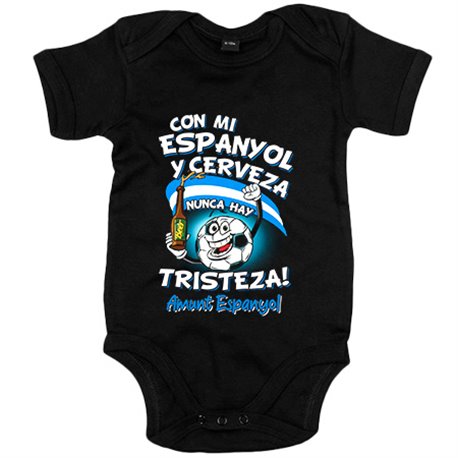 Body bebé frase con mi Espanyol y cerveza nunca hay tristeza para aficionado al fútbol