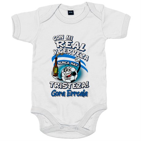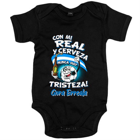 Body bebé frase con mi Real y cerveza nunca hay tristeza