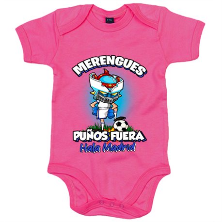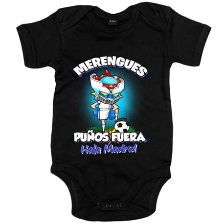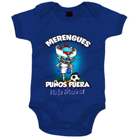 Body bebé frase merengues puños fuera parodia robot de los 80 para nostálgicos futboleros de Madrid