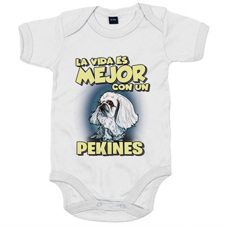Body bebé la vida es mejor con un perro de raza Pekinés blanco