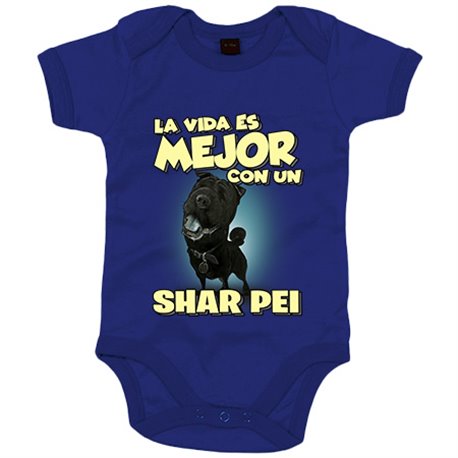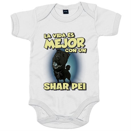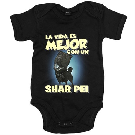 Body bebé la vida es mejor con un perro de raza Shar Pei negro