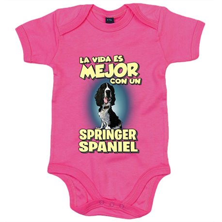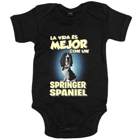 Body bebé la vida es mejor con un perro de raza Springer Spaniel blanco y negro