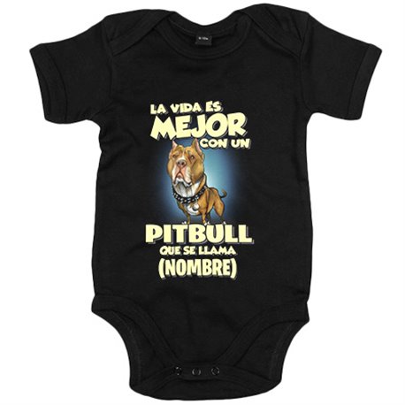 Body bebé la vida es mejor con un perro mascota Pitbull canela que se llama personalizable con nombre
