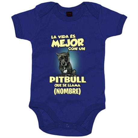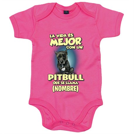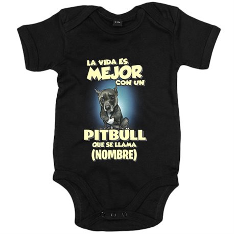Body bebé la vida es mejor con un perro mascota Pitbull negro que se llama personalizable con nombre