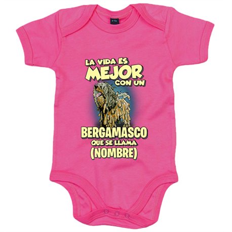 Body bebé la vida es mejor con un perro raza Bergamasco que se llama personalizable con nombre