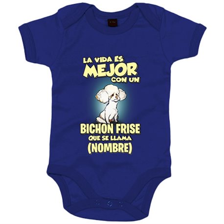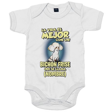 Body bebé la vida es mejor con un perro raza Bichon Frise que se llama personalizable con nombre