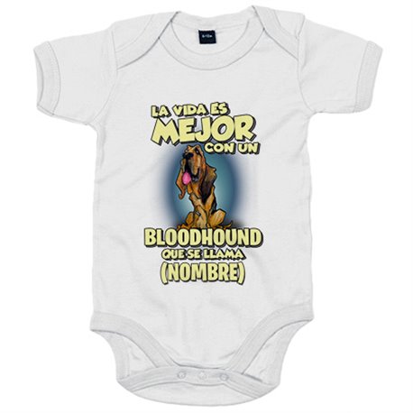 Body bebé la vida es mejor con un perro raza Bloodhound que se llama personalizable con nombre