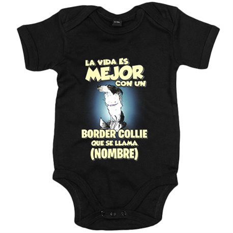 Body bebé la vida es mejor con un perro raza Border Collie que se llama personalizable con nombre