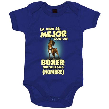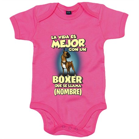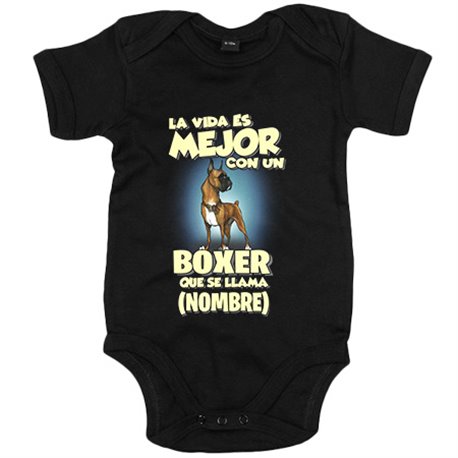 Body bebé la vida es mejor con un perro raza Boxer que se llama personalizable con nombre