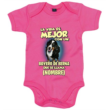Body bebé la vida es mejor con un perro raza Boyero de Berna que se llama personalizable con nombre