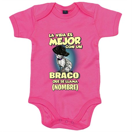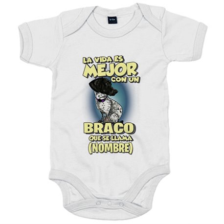 Body bebé la vida es mejor con un perro raza Braco que se llama personalizable con nombre