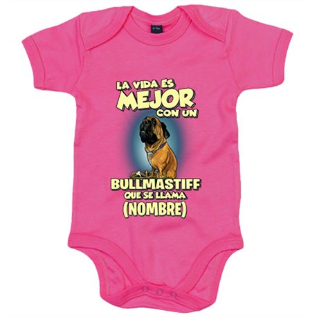 Body bebé la vida es mejor con un perro raza Bullmastiff que se llama personalizable con nombre