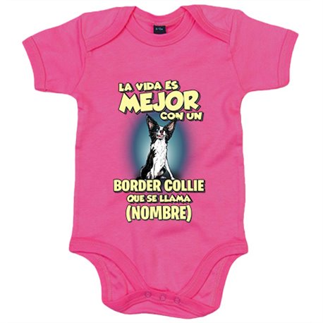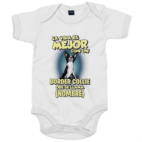 Body bebé la vida es mejor con un perro raza Collie Border que se llama personalizable con nombre