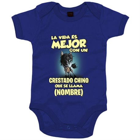 Body bebé la vida es mejor con un perro raza Crestado Chino que se llama personalizable con nombre
