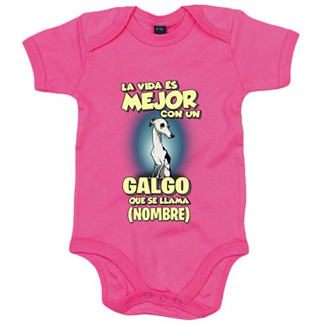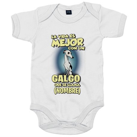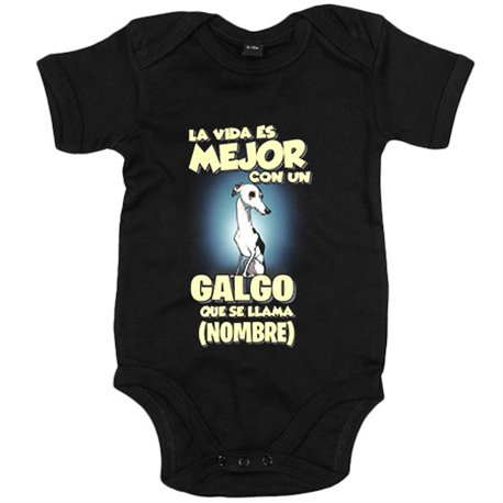 Body bebé la vida es mejor con un perro raza Galgo blanco y negro que se llama personalizable con nombre