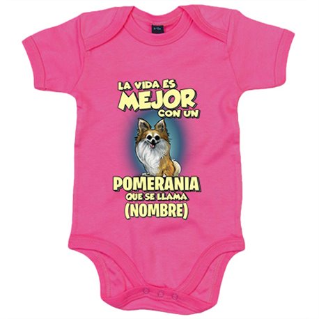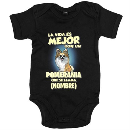 Body bebé la vida es mejor con un perro raza Pomerania que se llama personalizable con nombre