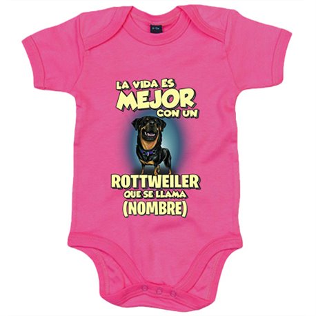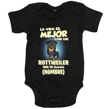 Body bebé la vida es mejor con un perro raza Rottweiler que se llama personalizable con nombre