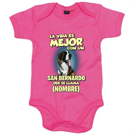 Body bebé la vida es mejor con un perro raza San Bernardo que se llama personalizable con nombre