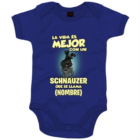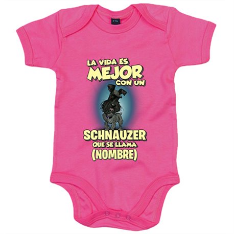 Body bebé la vida es mejor con un perro raza Schnauzer negro que se llama personalizable con nombre