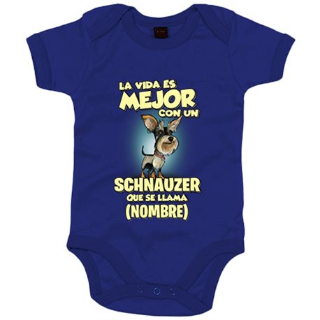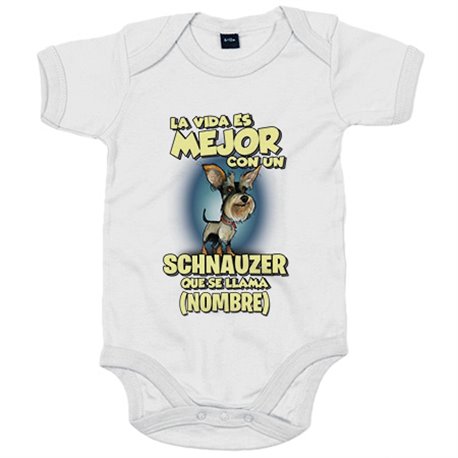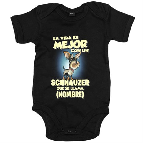 Body bebé la vida es mejor con un perro raza Schnauzer que se llama personalizable con nombre