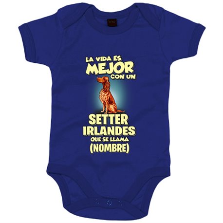 Body bebé la vida es mejor con un perro raza Setter Irlandés que se llama personalizable con nombre