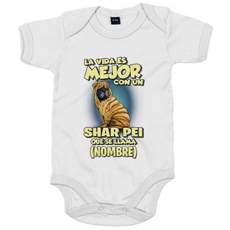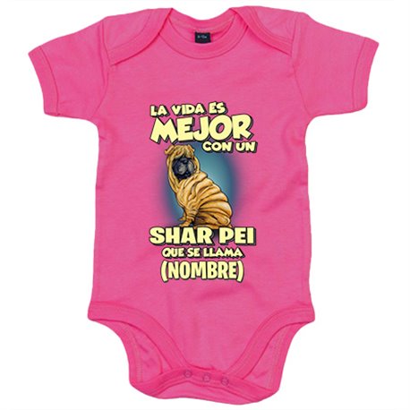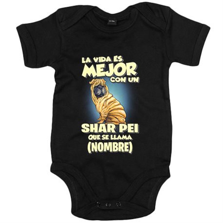 Body bebé la vida es mejor con un perro raza Shar Pei que se llama personalizable con nombre