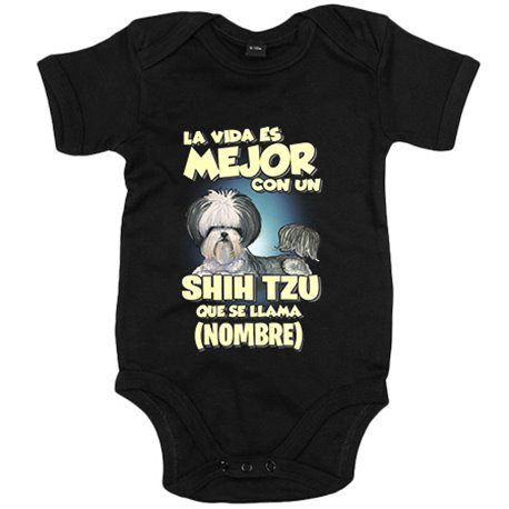 Body bebé la vida es mejor con un perro raza Shih Tzu que se llama personalizable con nombre