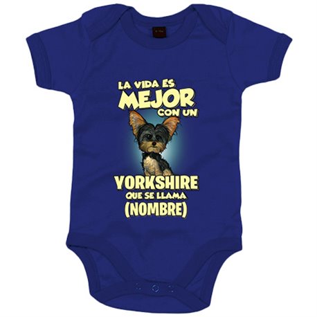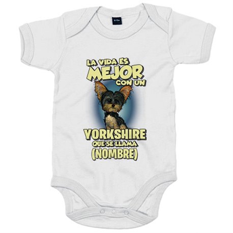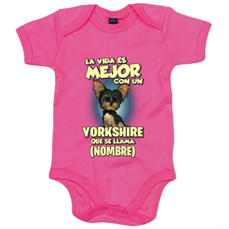 Body bebé la vida es mejor con un perro raza Yorkshire que se llama personalizable con nombre