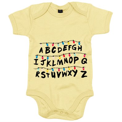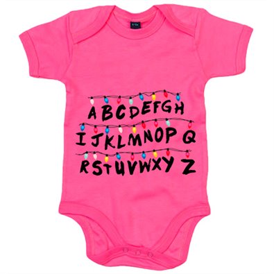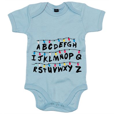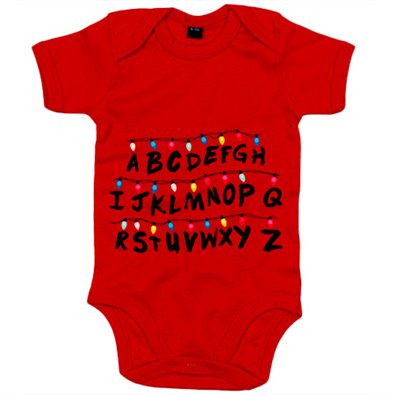 Body bebé parodia cosicas raras pared muro letras con luces de Navidad