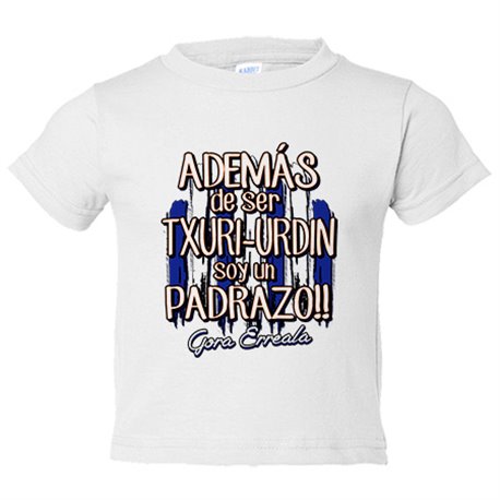 Camiseta bebé además de ser Txuri Urdin soy un padrazo futbolero de San Sebastían